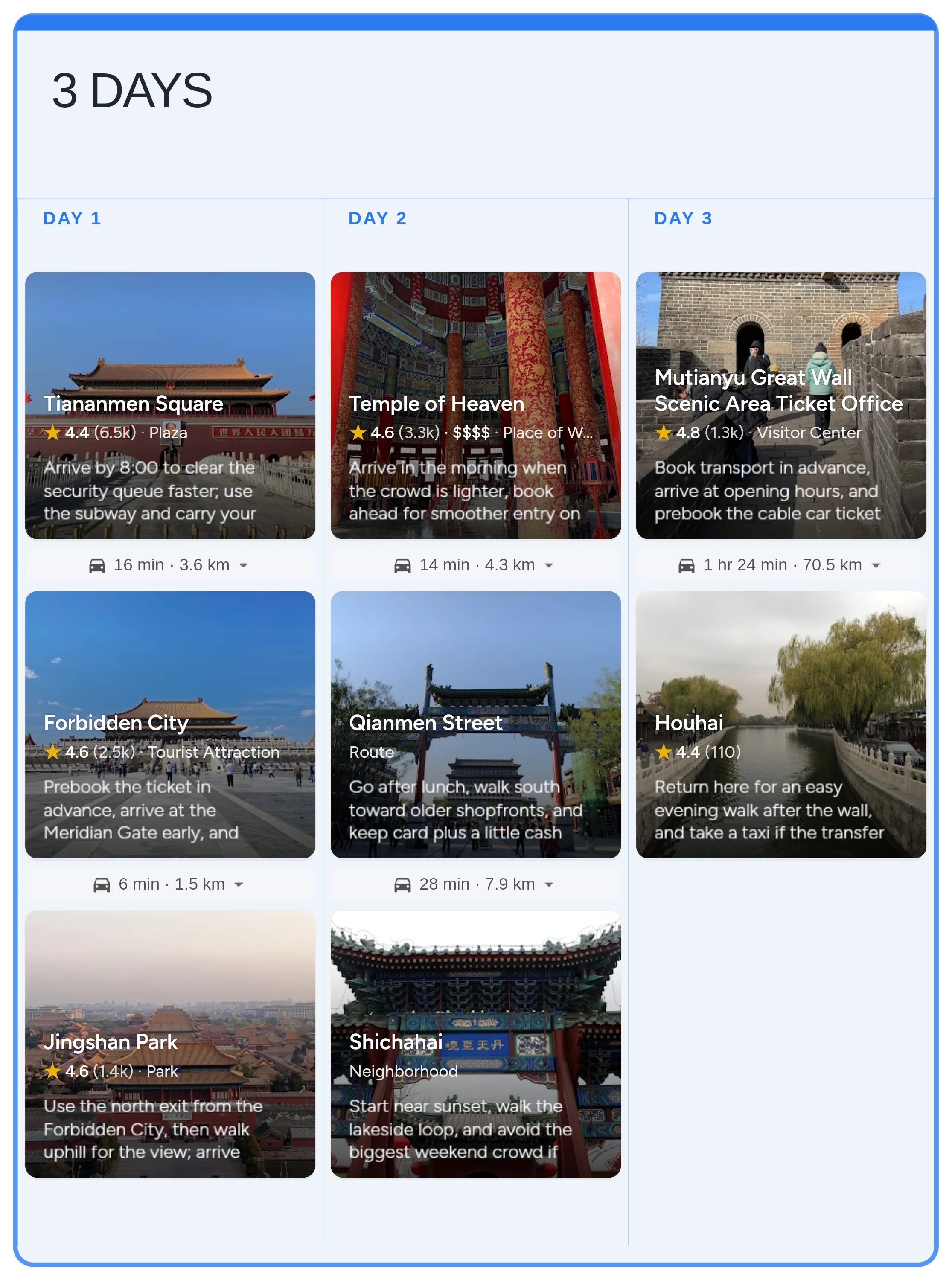 Start with the real Beijing board in Instaboard - mapped stops, day-by-day structure, and live sharing - then tailor the pacing, bookings, and notes to your trip.