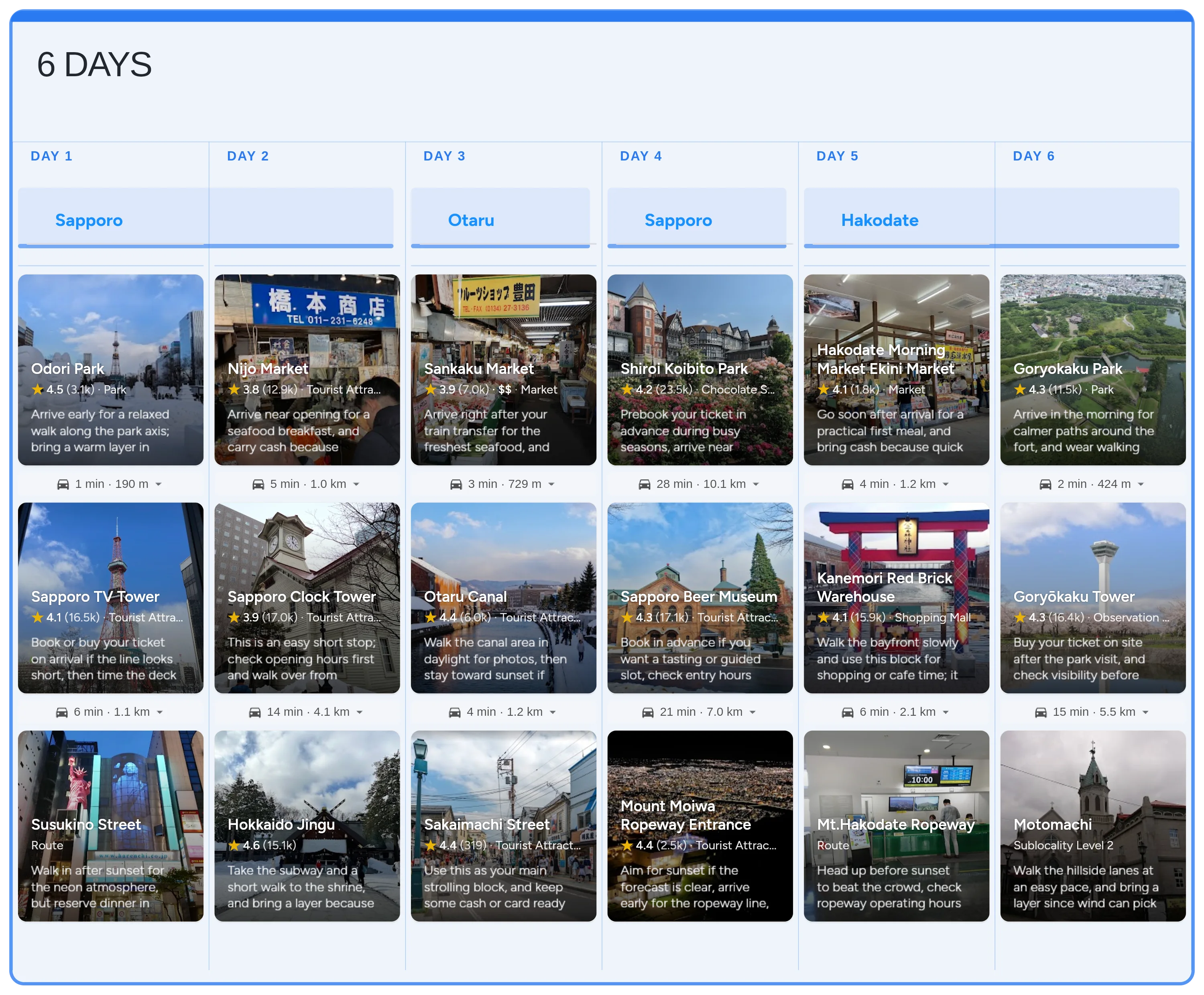 Start with the real Hokkaido board in Instaboard - mapped stops, day-by-day structure, and live sharing - then tailor the pacing, bookings, and notes to your trip.