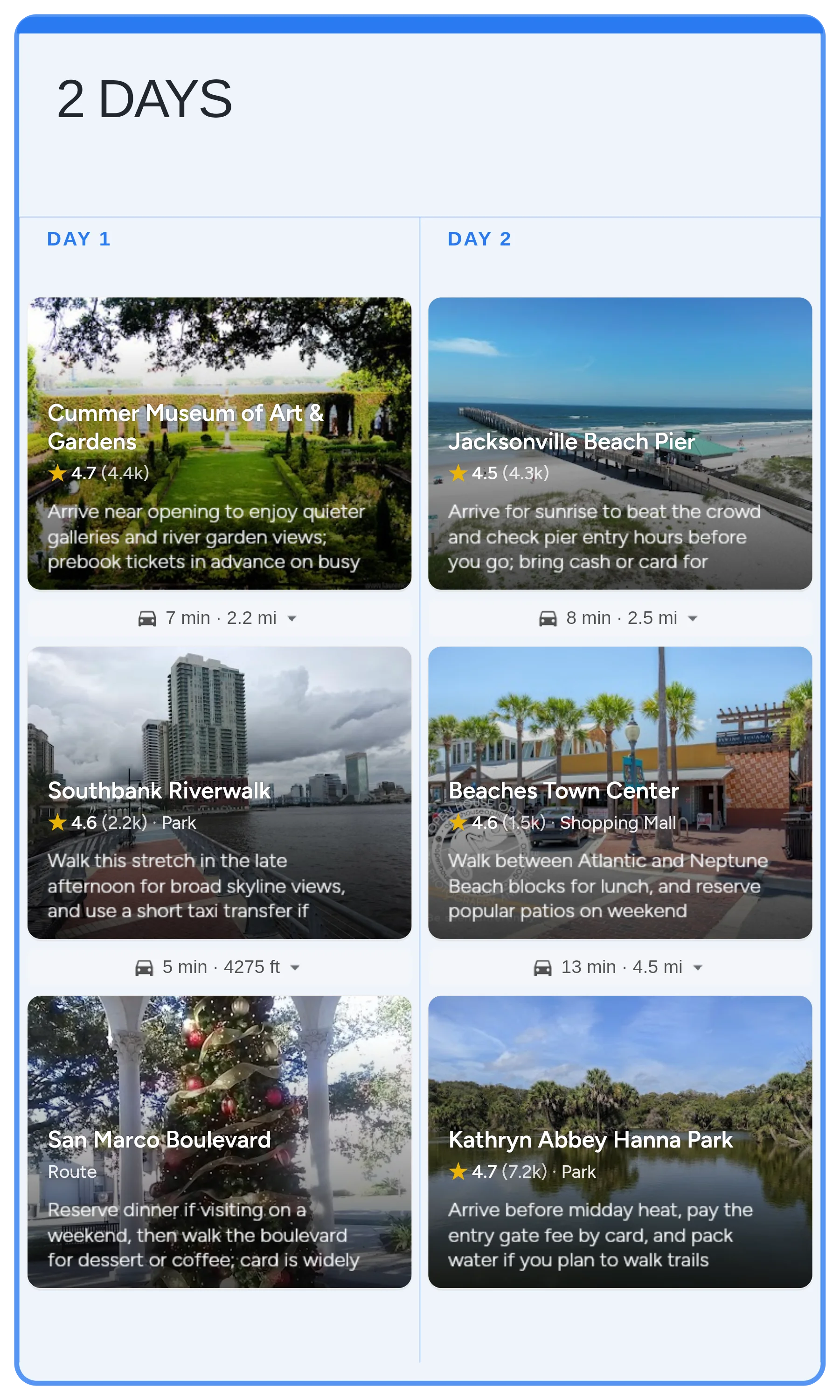 Plan a 2-day Jacksonville city break with a mix of riverfront walks, neighborhood dining, hands-on museums, and beach time. Best enjoyed April through October, with early starts and flexible coastal timing for warmer, humid days.