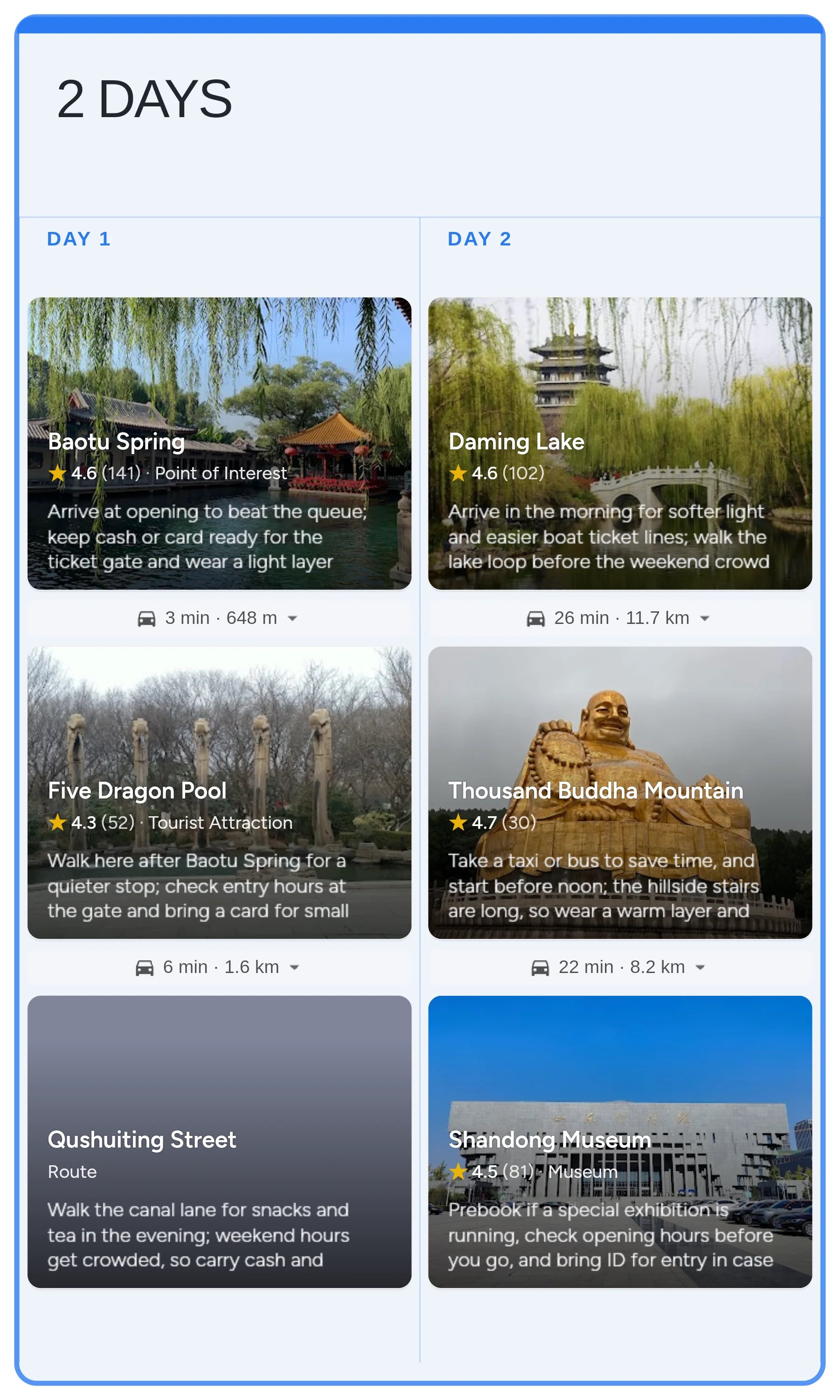Start with the real Jinan board in Instaboard - mapped stops, day-by-day structure, and live sharing - then tailor the pacing, bookings, and notes to your trip.