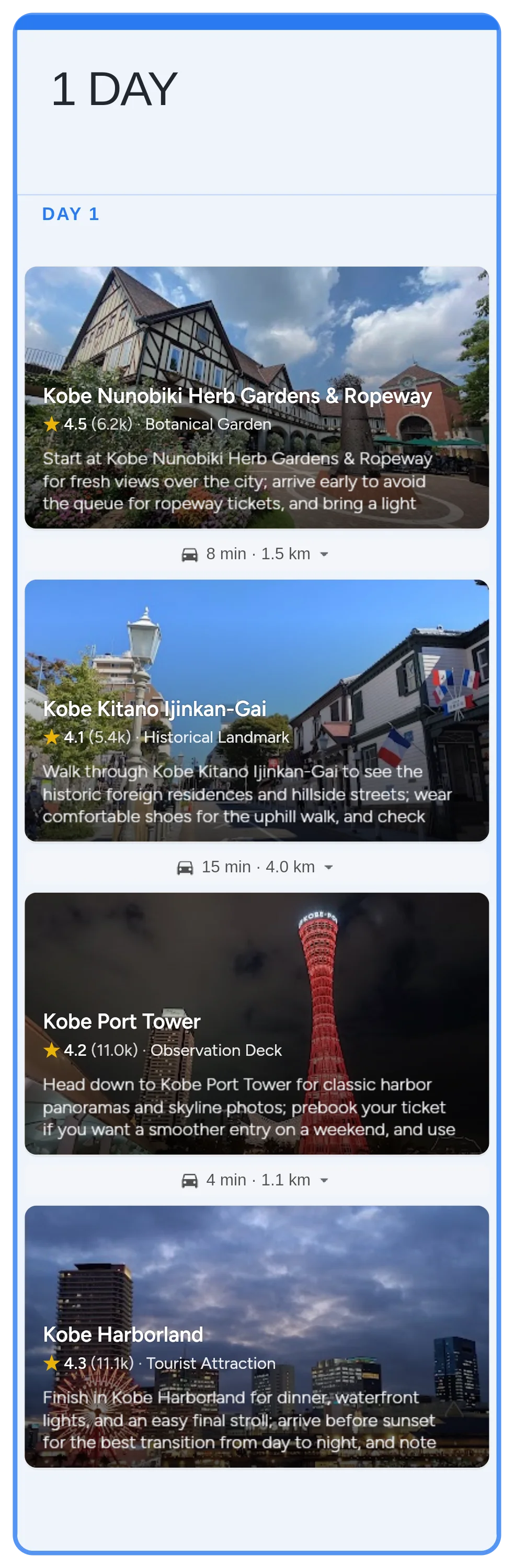 Use this 1-day Kobe itinerary to ride the Nunobiki ropeway, explore the Kitano hillside streets, and wrap up with harbor views around Port Tower and Harborland. It works year-round, with April to October offering the easiest weather for walking and viewpoints.
