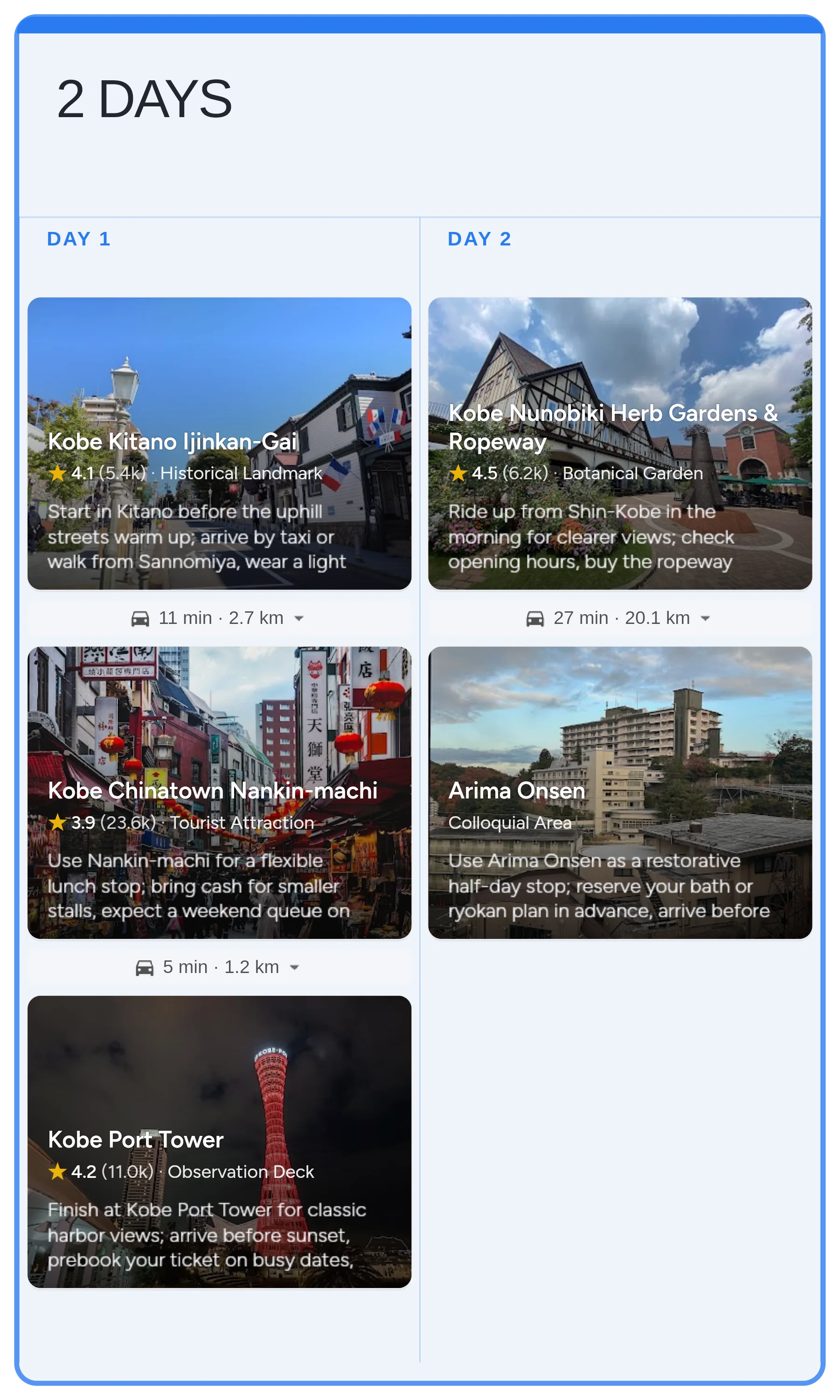 Start with the real Kobe board in Instaboard - mapped stops, day-by-day structure, and live sharing - then tailor the pacing, bookings, and notes to your trip.