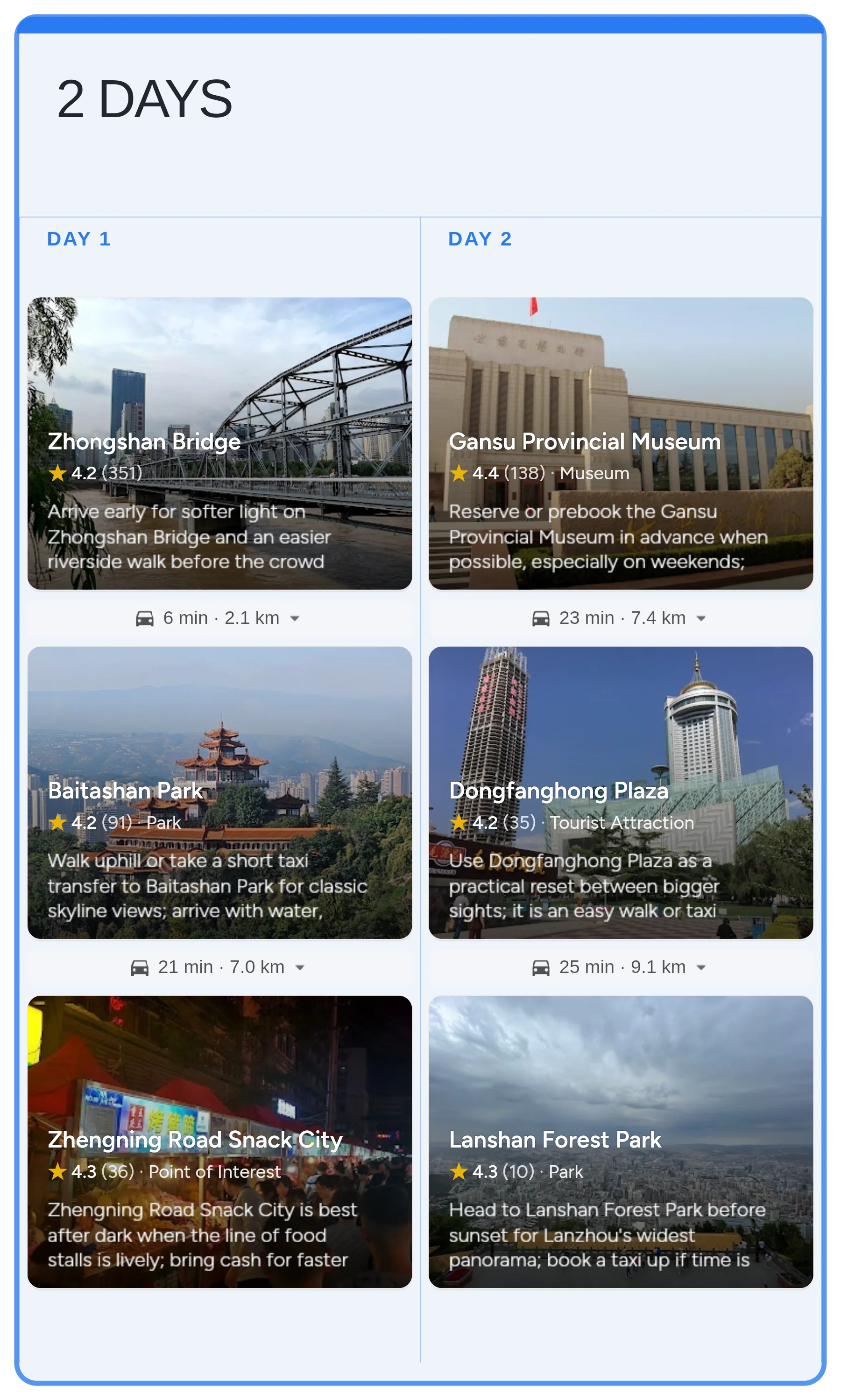 Start with the real Lanzhou board in Instaboard - mapped stops, day-by-day structure, and live sharing - then tailor the pacing, bookings, and notes to your trip.