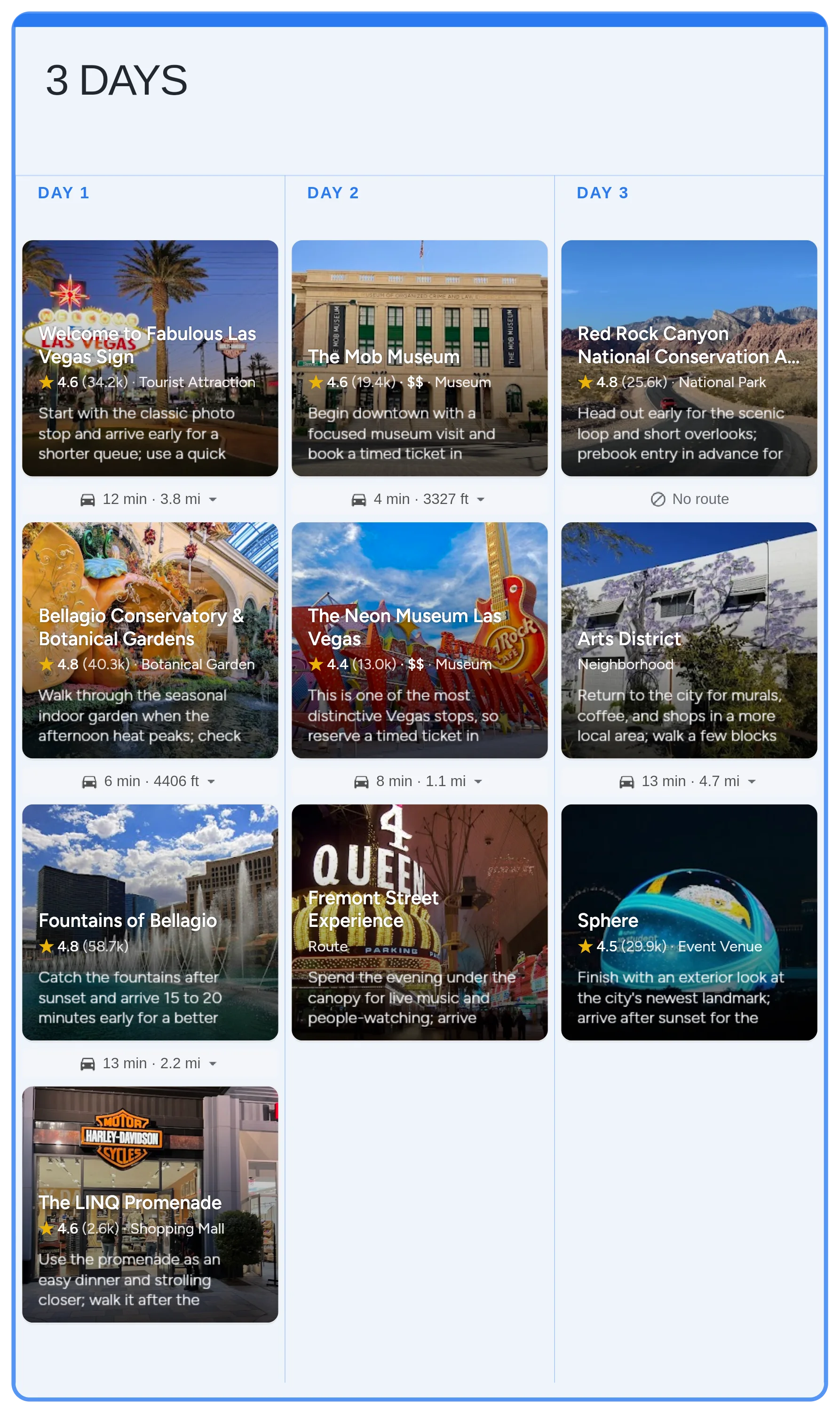 Start with the real Las Vegas board in Instaboard - mapped stops, day-by-day structure, and live sharing - then tailor the pacing, bookings, and notes to your trip.