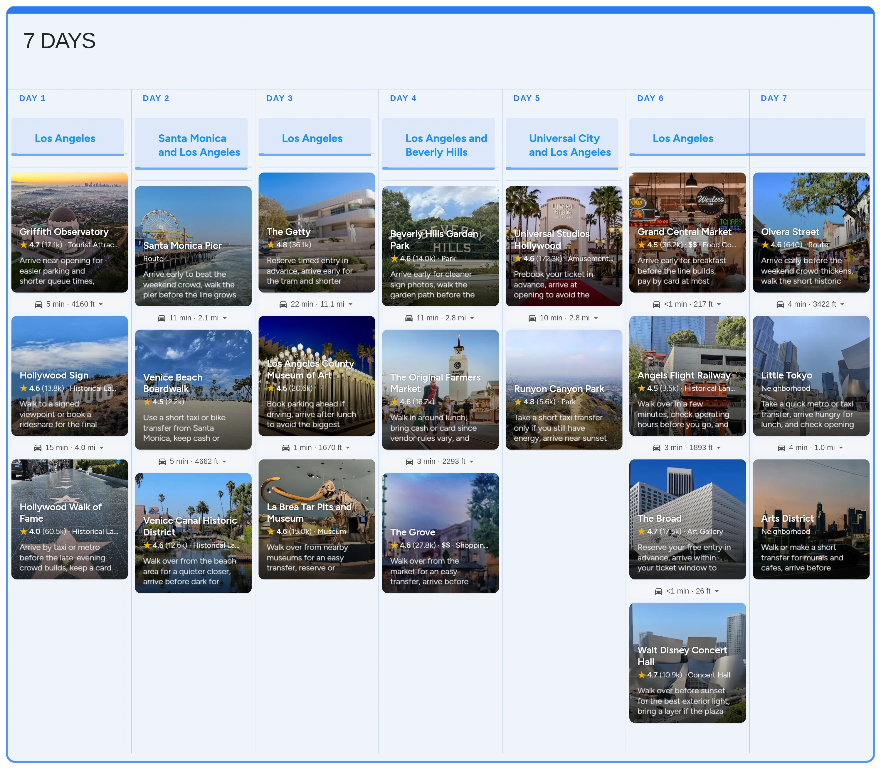 Start with the real Los Angeles board in Instaboard - mapped stops, day-by-day structure, and live sharing - then tailor the pacing, bookings, and notes to your trip.