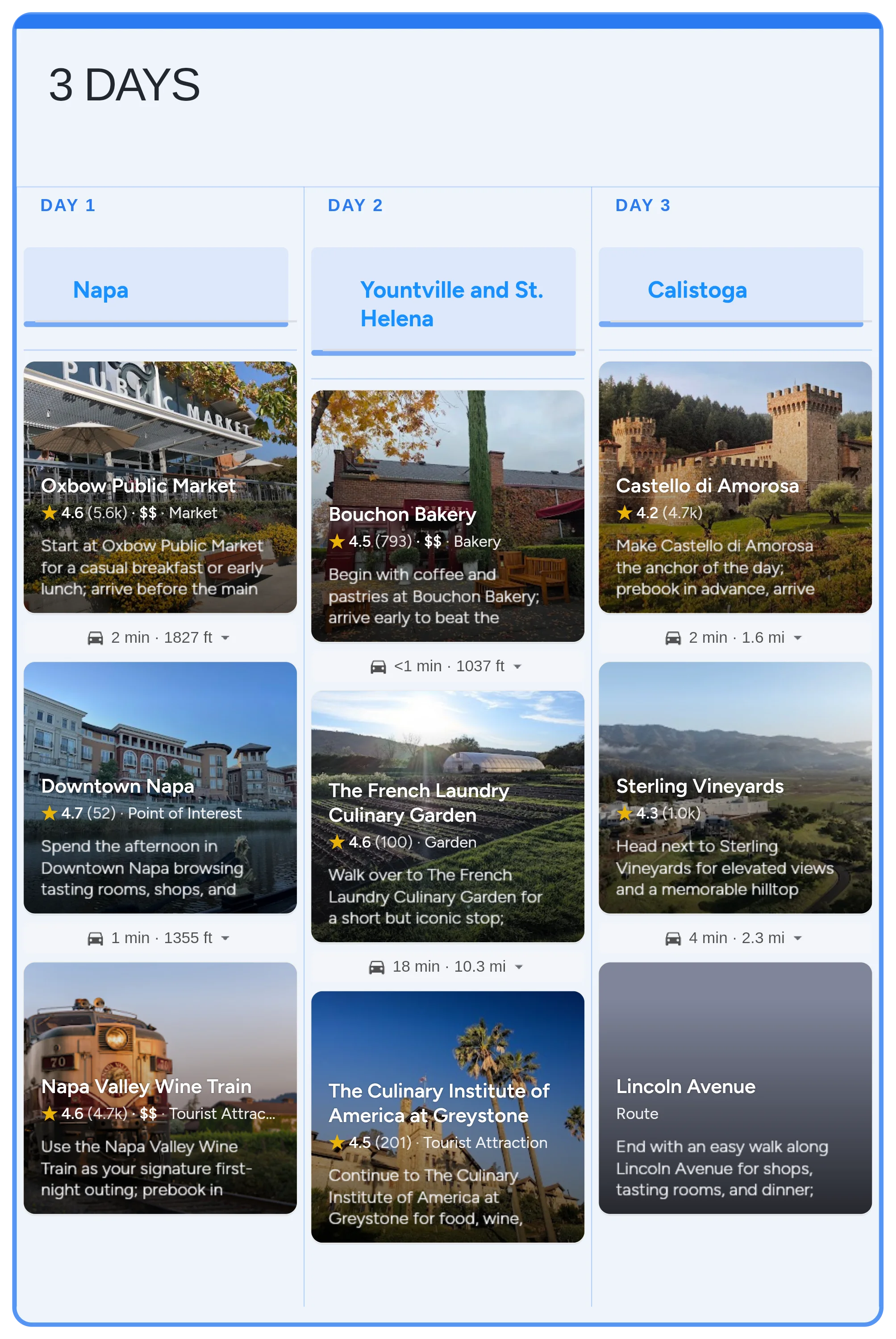 Plan a flexible 3-day Napa County city break with an interactive planner that links Downtown Napa highlights with classic Wine Country stops in Yountville, St. Helena, and Calistoga. Best enjoyed April through October, with cool mornings year-round.