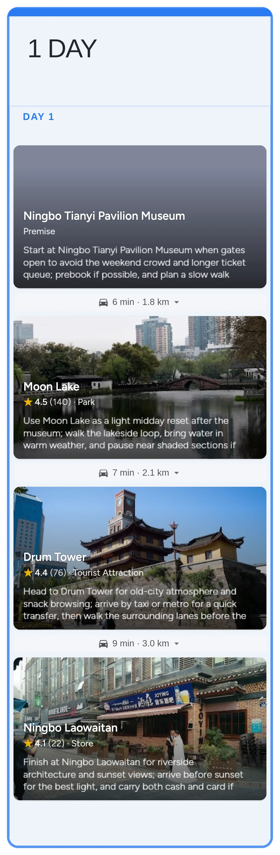 Start with the real Ningbo board in Instaboard - mapped stops, day-by-day structure, and live sharing - then tailor the pacing, bookings, and notes to your trip.